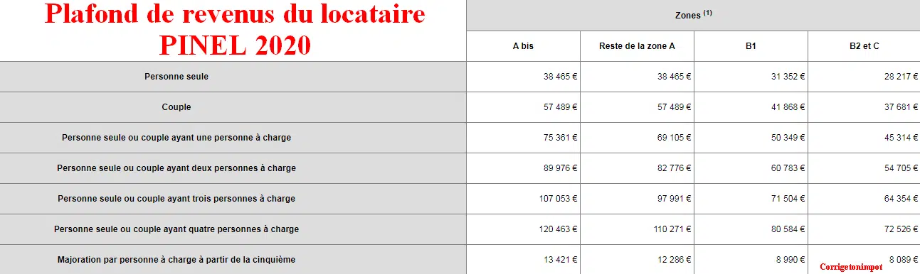 M. Corrigetonomhot loue à Pinel sur une zone B1. Locataire part en 2021, il doit le remplacer. Il doit demander l’avis de cotisation fiscale pour 2020 de 2019 du futur locataire. Il ne peut louer la propriété que si les recettes fiscales de référence de l’avis d’impôt 2020 sont inférieures au seuil du tableau.